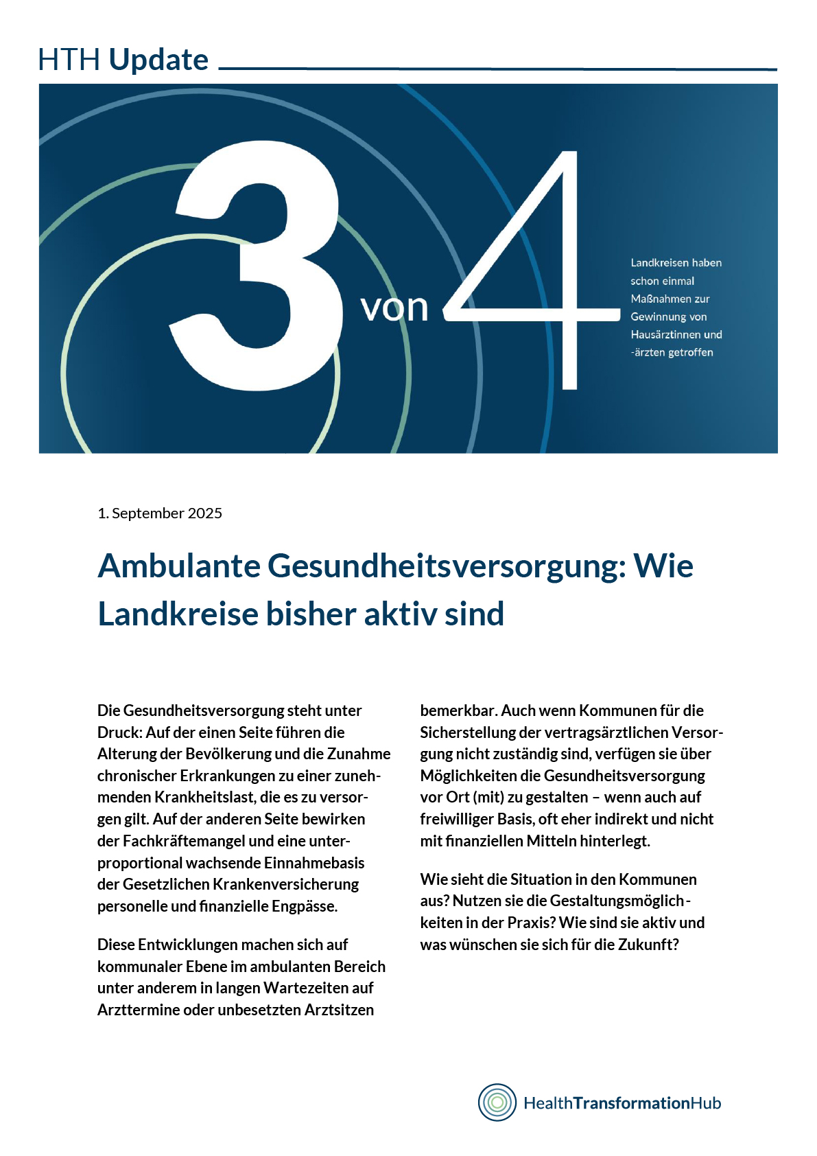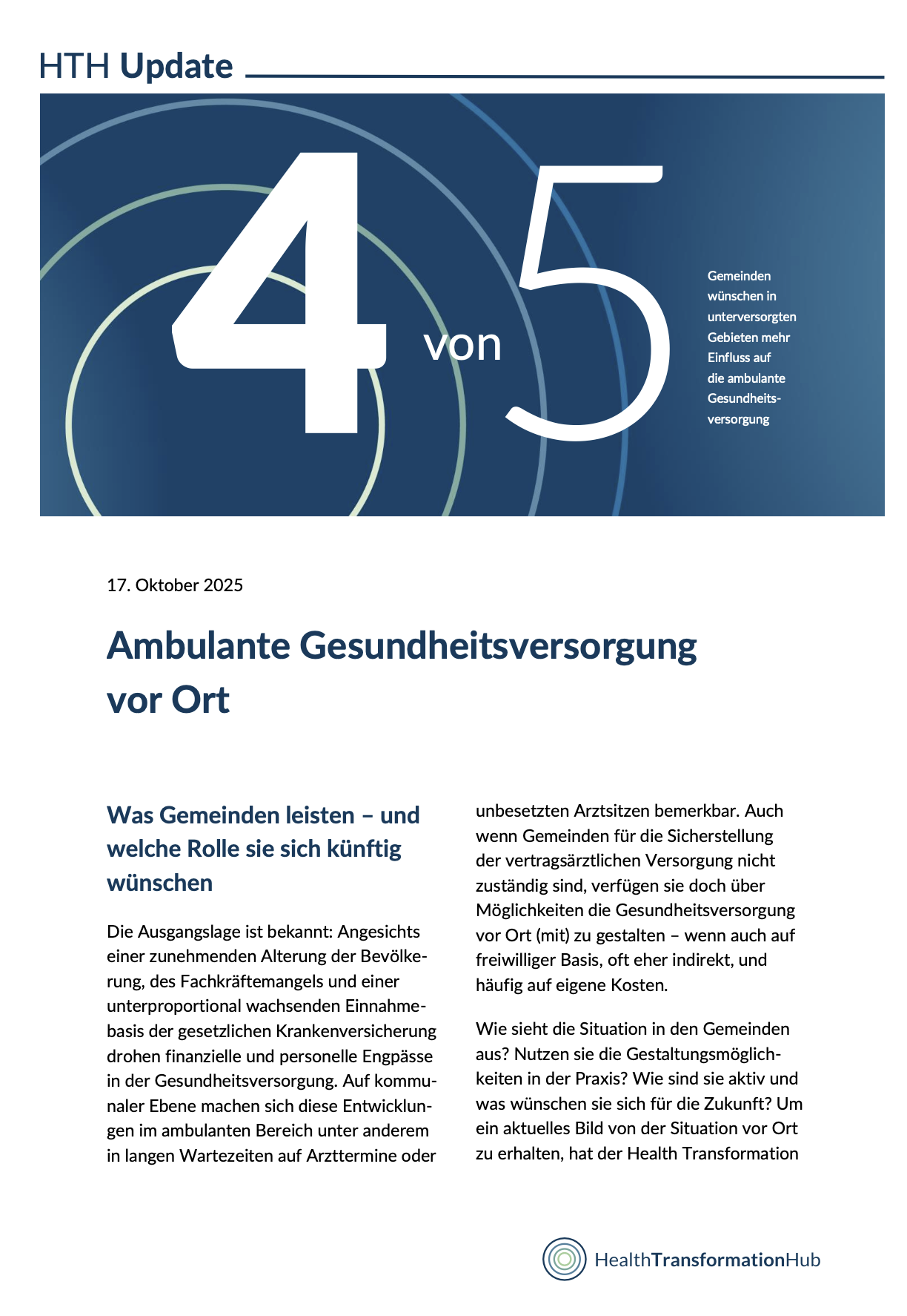 Der Health Transformation Hub ist eine Plattform für die Akteure des Gesundheitssystems, die unsere Gesundheitsversorgung durch aktives Handeln verbessern wollen und können. Hier kommen sie zusammen, um gemeinsam mit uns Lösungen zu entwickeln und umzusetzen. Unser Ziel: Ein patientengerechtes, leistungsstarkes und zukunftsfestes Gesundheitssystem.
