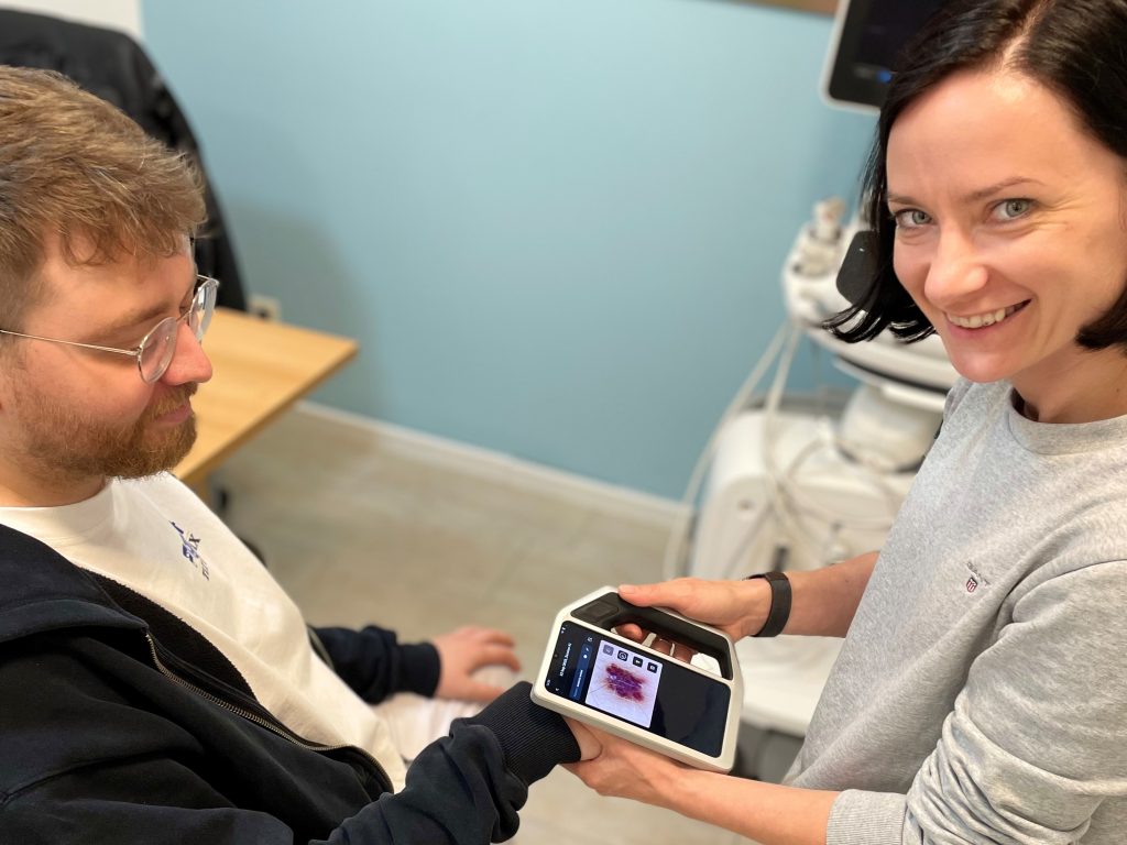 Auch der Dermatologie-Schwerpunkt ist so entstanden: „Hier in der Region einen Termin zu bekommen, dauert sehr lange“, erzählt Anastasia Weizel. Vor acht Jahren ist sie als Medizinische Fachangestellte in die Praxis gekommen. Eissing hatte jemanden gesucht, der sich vor allem um die Wundversorgung kümmert. Jahrelang hat sie der damals noch in der Praxis tätigen Dermatologin assistiert und dabei auch einen guten Blick für eventuell bösartige Muttermale entwickelt. Als die Ärztin dann in den Ruhestand ging, übernahm Anastasia Weizel immer mehr Verantwortung. Eissing ermunterte sie schließlich, noch ein Studium zur PA anzuschließen. „Du schaffst das, hat er zu mir gesagt, und da habe ich es gemacht“, erzählt Anastasia Weizel. Neben Fulltimejob in der Praxis und zwei kleinen Kindern hat sie dreieinhalb Jahre lang studiert – und den Abschluss geschafft. Inzwischen ist sie Teil der Geschäftsführung des MVZ.