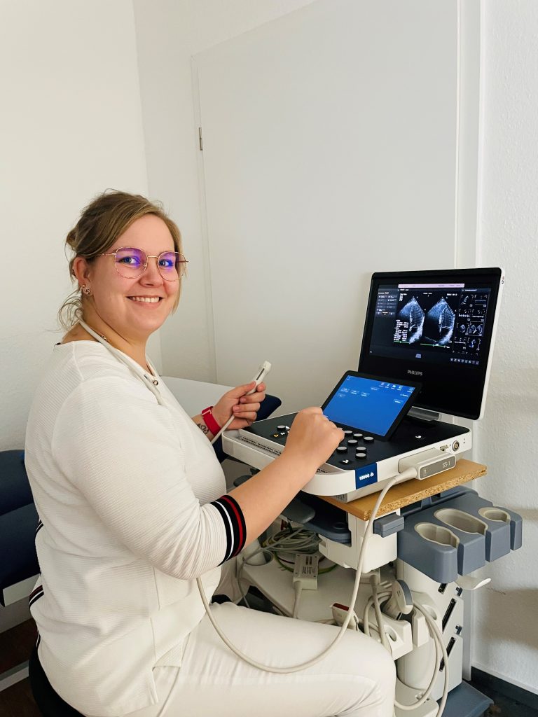 Wenn etwa im Emsland jemand Rheuma bekommt, hat er nicht nur Schmerzen, sondern auch noch ein Problem mit der medizinischen Versorgung. „Da gibt es sehr lange Wartezeiten oder man muss weit fahren“, sagt Anastasia Weizel. Deshalb seien die Patienten über die Versorgung in dem MVZ sehr froh. Und die läuft standardisiert: Beschreibt jemand beispielsweise Symptome, die auf Rheuma hindeuten könnten, wird er meist ihr zugeordnet. Sie veranlasst dann eine Blutentnahme, macht einen Ultraschall von den Gelenken und gegebenenfalls noch ein spezielles bildgebendes Verfahren von den Händen, das Entzündungen zeigt („Xiralite“). Und sie lässt einen Fragebogen zur Familienanamnese ausfüllen. Alles zusammen schickt sie digital an die Internistin und Rheumatologin Dr. Werner aus Düsseldorf, die mit dem MVZ kooperiert und die Daten auswertet. „Ich gehe dabei absolut nach ihrem Schema vor“, erklärt Weizel.